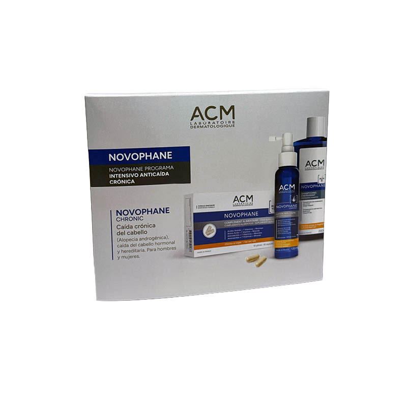 Novophane Chronic Loción: una vez al día, disminuye la caída crónica del cabello y ayuda al crecimiento del cabello.indicada para tratar alopecia androgénica, caída del cabello hormonal y hereditaria. Uso hombres y mujeres.
