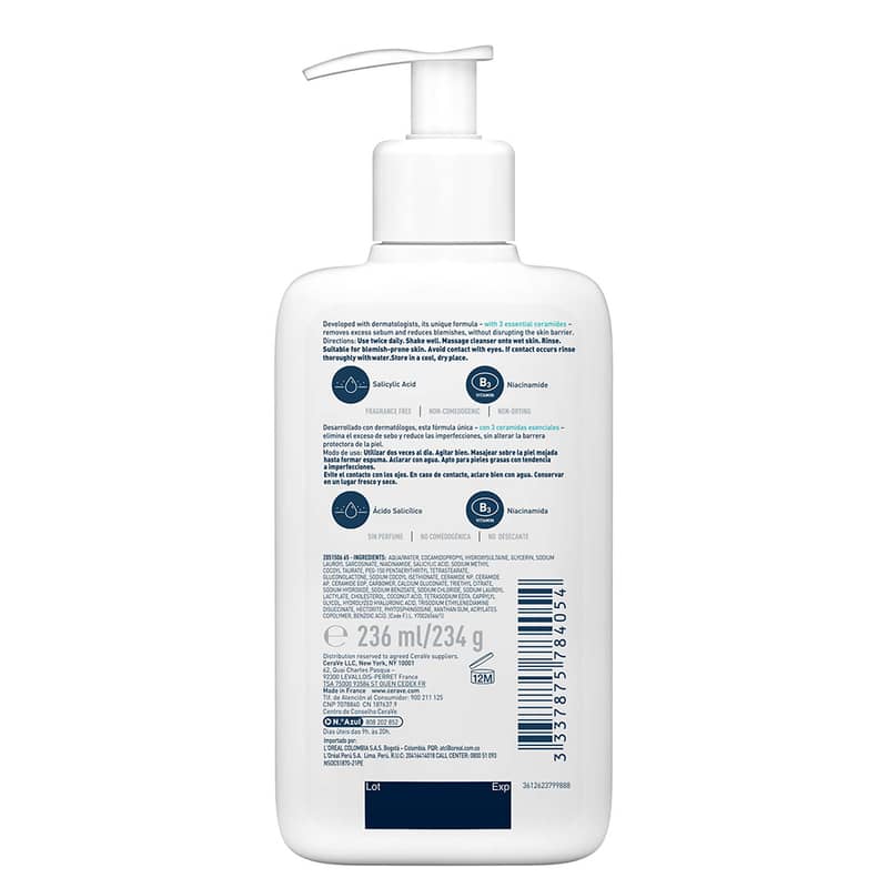 Cerave Limpiador Control Imperfecciones 236ml es apto para la limpieza diaria de las pieles con tendencia acneica.