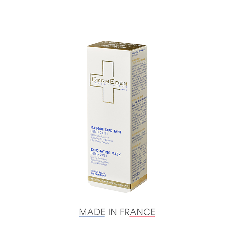La Mascarilla Exfoliante Detox 2 en 1 de Protocolo Específico es un exfoliante químico y mecánico. Químico porque se inspira en los procedimientos dermatológicos y contiene agentes ácidos (generalmente ácidos de frutas, en este caso Hidroxiácidos) que atacan las células muertas de la epidermis para eliminarlas por descamación. También contiene polvo de hueso de albaricoque, que refuerza el exfoliante mecánico.