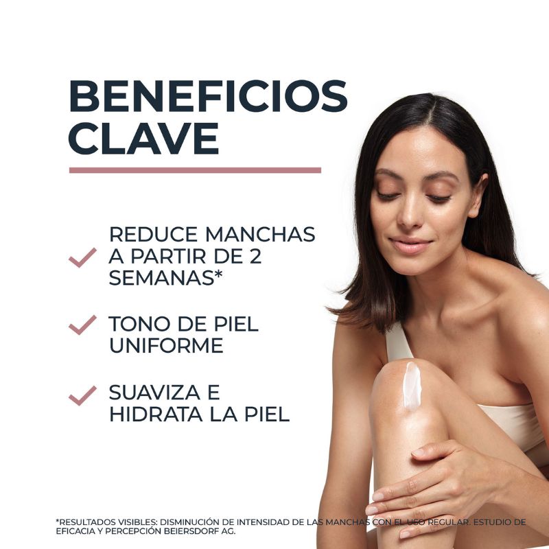 Una crema corporal clínicamente probada que reduce eficazmente la apariencia de manchas oscuras y exfolia suavemente la piel en áreas de fricción como rodillas, codos y pequeñas áreas de manchas post-imperfecciones. El Thiamidol reduce de manera efectiva las manchas oscuras y unifica el tono de la piel.