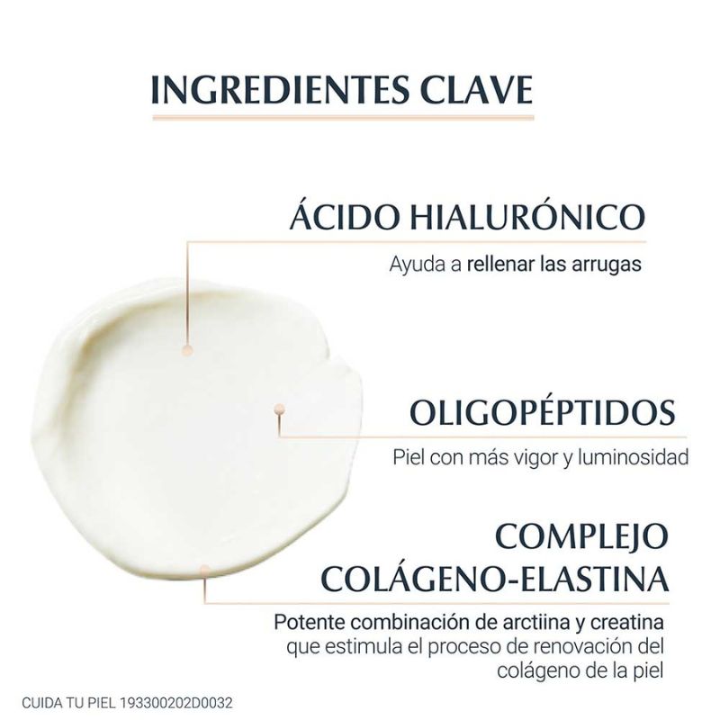 Contorno de ojos Anti-Edad para piel madura con protección UVA y UVB e hialurón. Formulada con complejo de Colágeno y Elastina para aumentar la elasticidad de la piel. Especialmente formulada para aliviar los signos avanzados del envejecimiento prematuro y ayudar a rellenar visiblemente las arrugas para una mirada fresca y despierta.