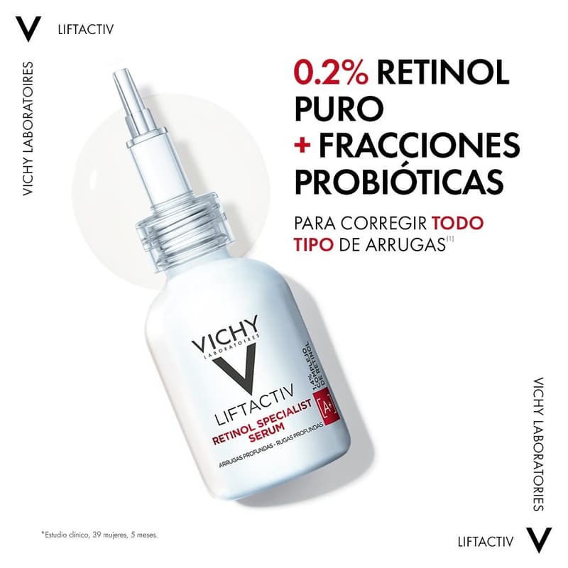 Sérum para el rostro que reduce todos los signos del envejecimiento y todo tipo de arrugas, incluso las más profundas. Potenciado con 0.2% de retinol puro y fracciones probióticas.